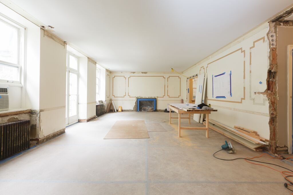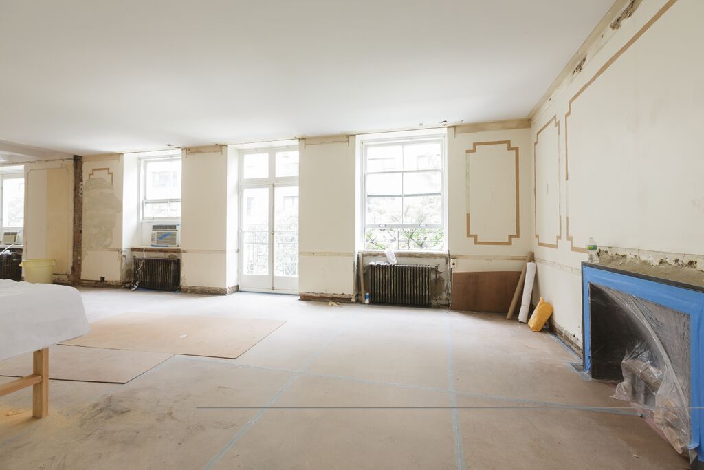 A living room that combines modern comfort with natural aesthetics. Large windows provide natural light and views, natural wood-patterned flooring, a comfortable sofa, and a contemporary fireplace. These elements aim to transform the interior into a serene and luxurious retreat.