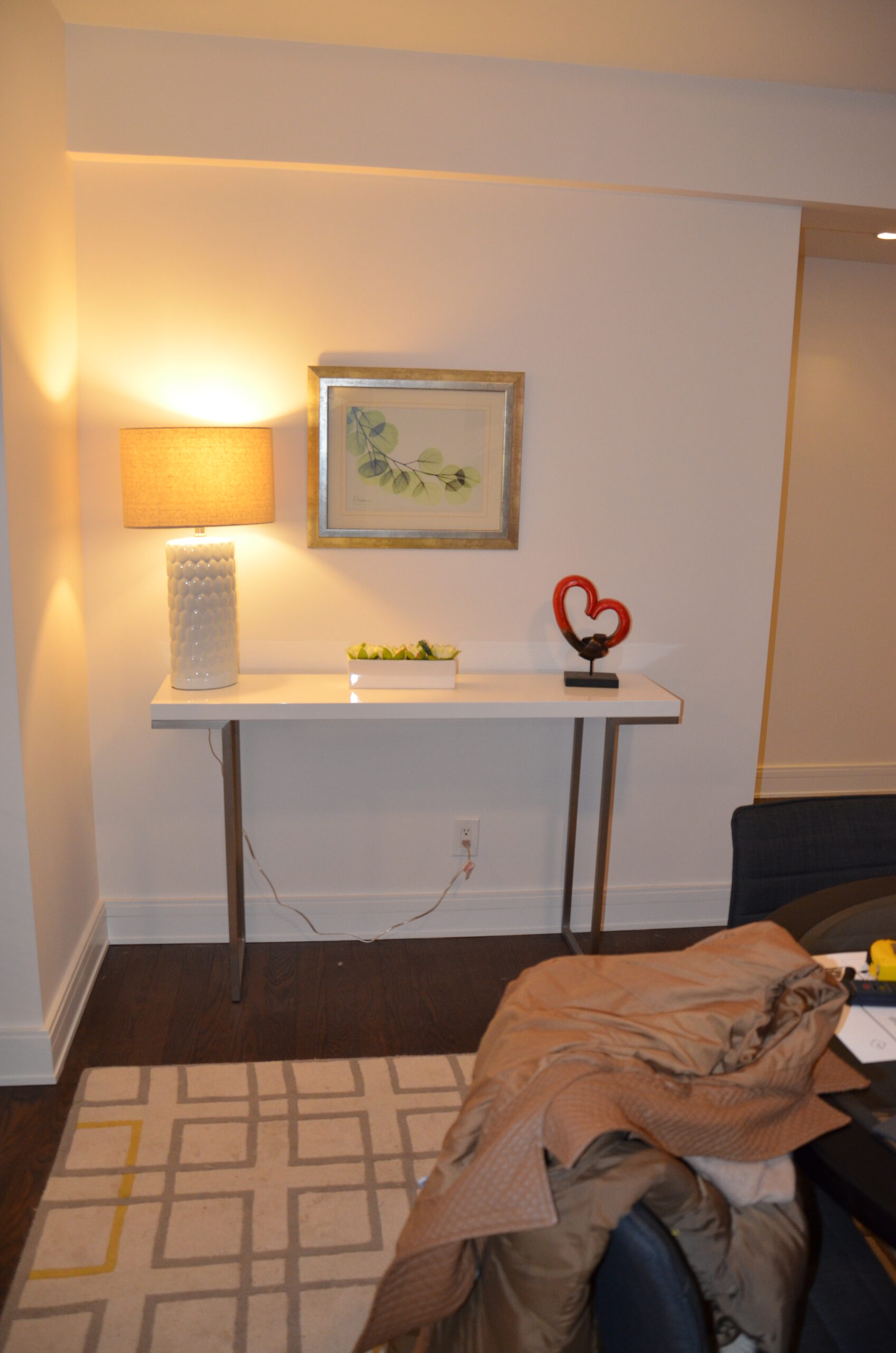 Family room design that blends comfort, functionality, and aesthetics. Key elements include a cozy sofa, large windows for natural light, a wooden floor for warmth, white walls for a spacious feel, and a stylish storage cabinet. These components create an inviting and practical space for family gatherings and relaxation.