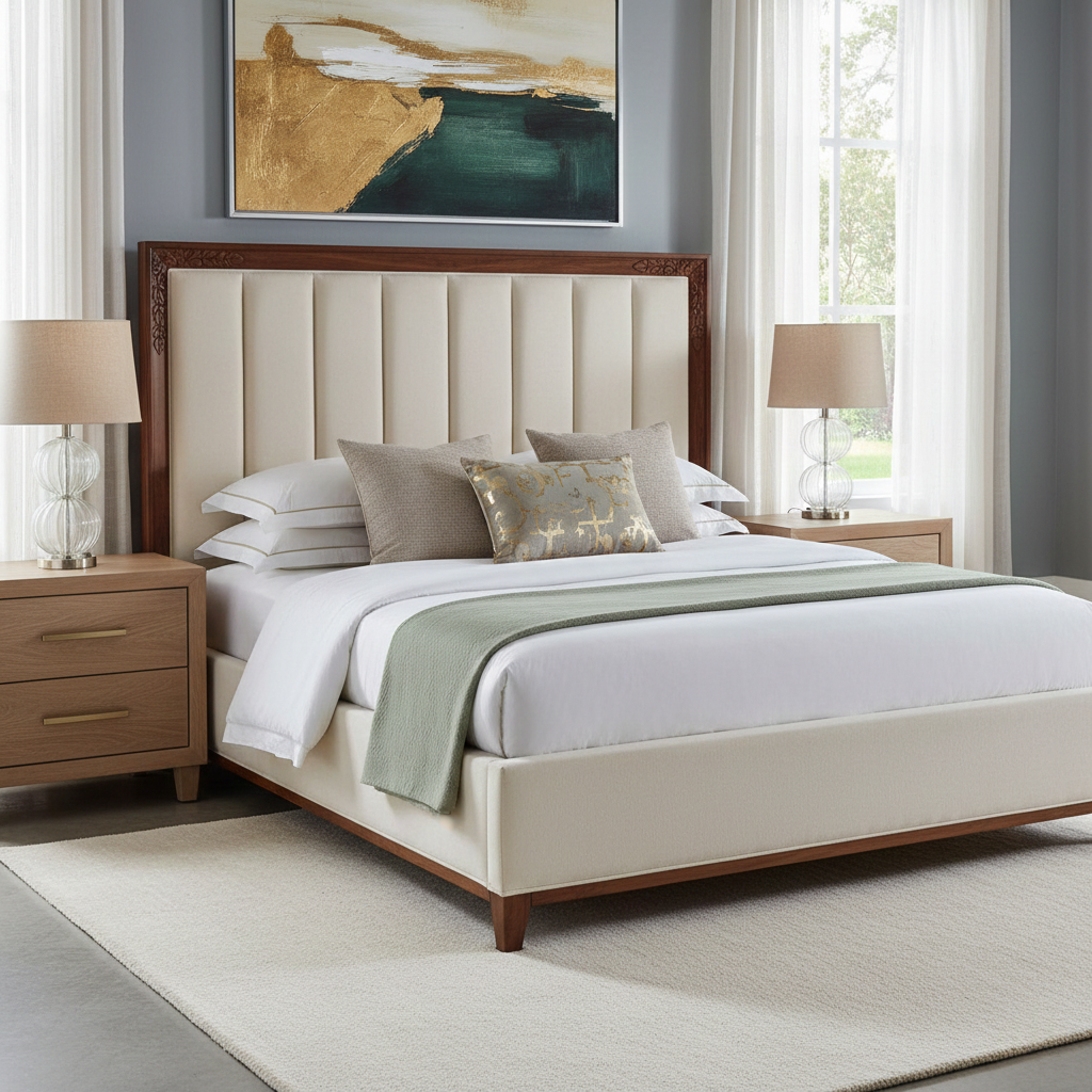 A refined collection of custom-designed beds created to serve as the foundation of the bedroom. Each piece is carefully conceived as both furniture and architecture, with close attention to proportion, comfort, and material integrity. From upholstery and wood selection to detailing and finish, every element is thoughtfully considered and tailored to the space it inhabits. Designed to complement a wide range of interior styles, The Bed Line reflects a commitment to craftsmanship, longevity, and quiet sophistication. Each bed is made in collaboration with trusted workrooms, ensuring precision, durability, and a level of refinement that endures over time.